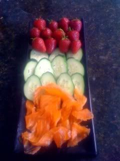 I made cured salmon (salt, sugar, lemon and orange zest and let it sit for three days), and went to the farmer's market. Brunch was cured salmon with cucumbers and fresh strawberries. bad cell phone pic here: [link]